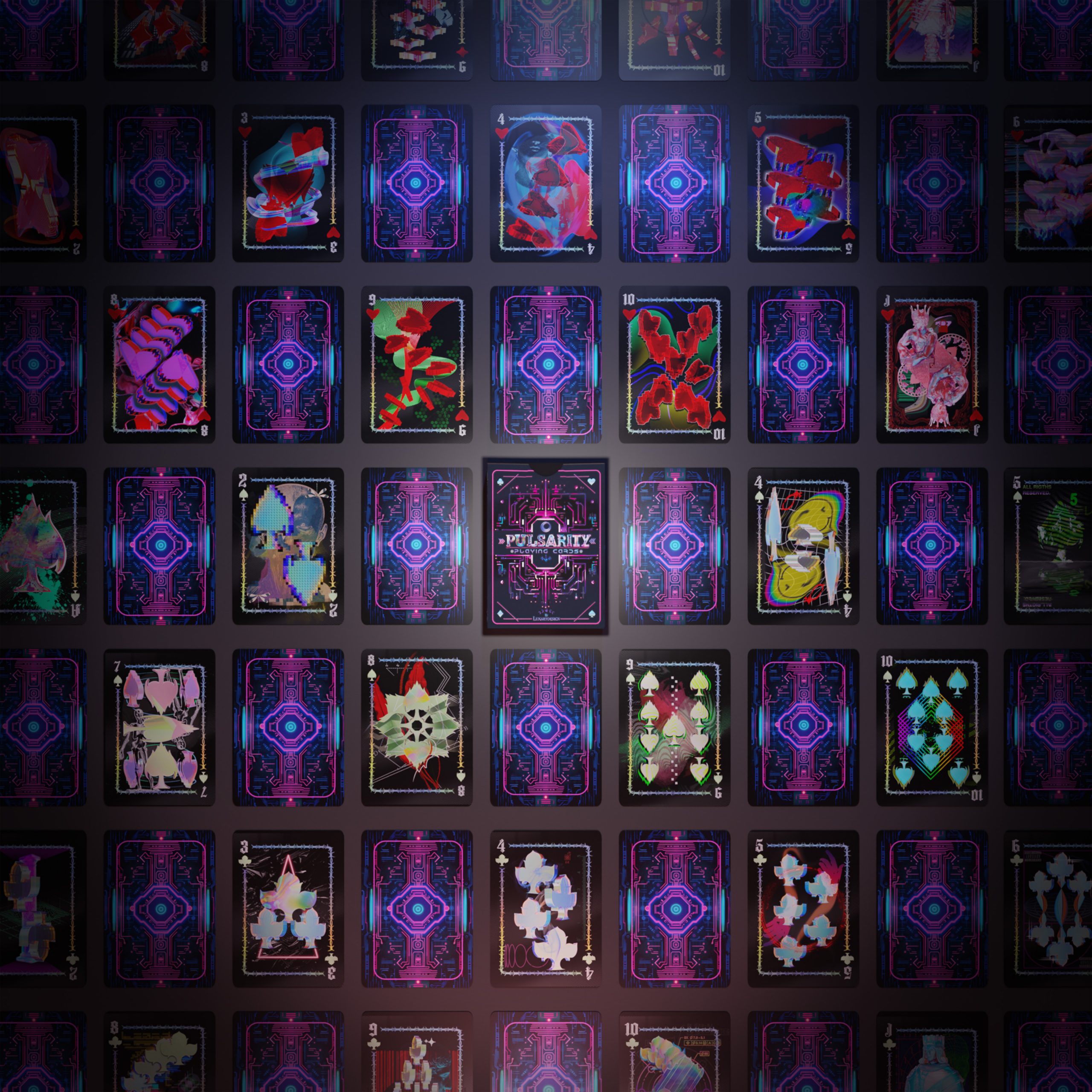 The name of the deck comes from pulsar. Pulsar is often associated with astronomy and astrophysics.Pulsars are astronomical objects that produce regularly repeating radio waves or other electromagnetic radiation from dense neutron stars located in space. Pulsars are generally seen emitting radiation parallel to their magnetic fields relative to their rotation axes. Therefore, pulsars produce regular bursts of bright light or pulse-shaped radio signals called “pulsars”. Pulsars are an important research topic for astronomers to observe and study. The term “Pulsarity” can be used in a more general context to refer to the property of something to produce pulses or undulations in a regular and repetitive manner. For example, the rhythmic rise and fall of a sound wave or the regular fluctuation of an electrical signal may be called “pulsarity.” This topic is the inspiration for the playing cards